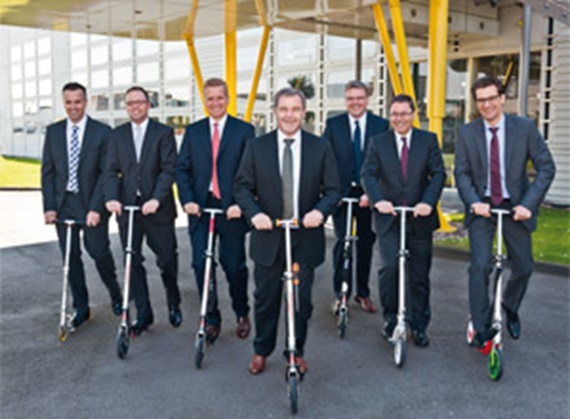 soldan sağa : Yataklar Satış ve Pazarlama Başkanı Tobias Vogel; Hareketli Kablo Kanalları Satış ve Pazarlama Başkanı Michael Blaß; CEO Frank Blase; Polimer Yataklar İş Birimi Başkanı ve Başkan Yardımcısı Gerhard Baus; Uluslararası Grup Geliştirme ve Pazarlama Başkanı Artur Peplinski; Hareketli Kablo Kanalları İş Birimi Başkanı ve Başkan Yardımcısı Harald Nehring; Finans ve Denetim Başkanı ve Başkan Yardımcısı Christoph Müller