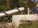 This machine cleans and sorts all types of grain. First the grain is separated from other material by an air current.